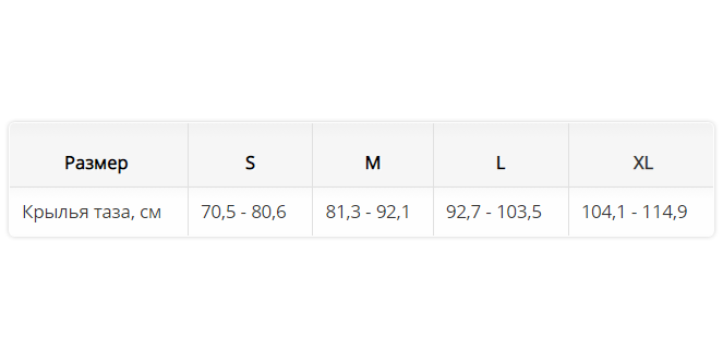 Крылья таза, см    70,5 - 80,6    81,3 - 92,1   92,7 - 103,5    104,1 - 114,9
